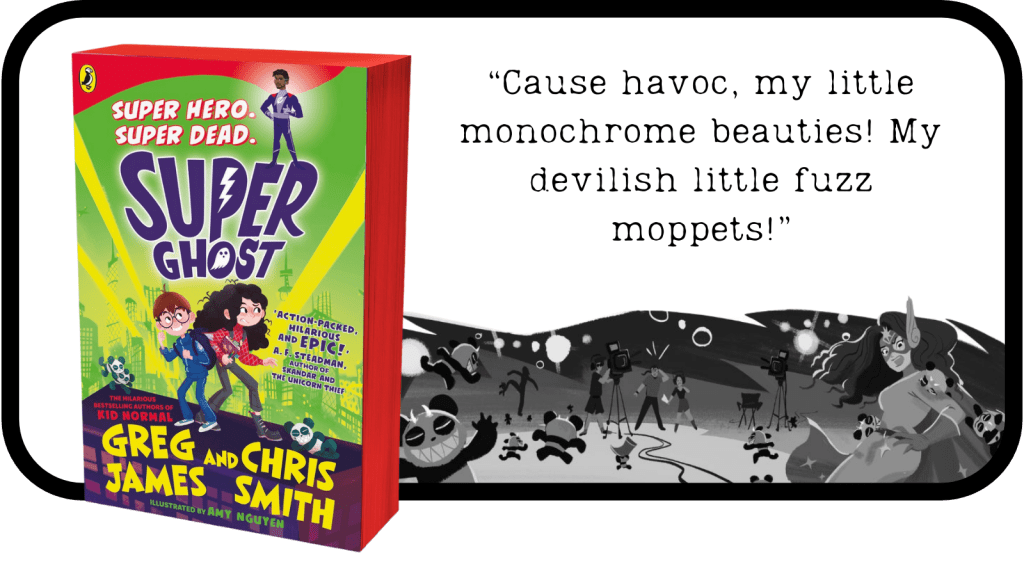 The title came to Chris while he was on holiday in Wales. It was suggested by the fact that Greg had always wanted to kill off a character in one of our books. He wanted to get rid of Flora in Kid Normal but Chris wouldn’t let him because she was based on his own nanna. So we decided we would kill off a hero – but do it in chapter one. Because lockdown was still going on, we collaborated online quite a lot to write this one: lots of FaceTime and Zoom calls and not so much pizza.