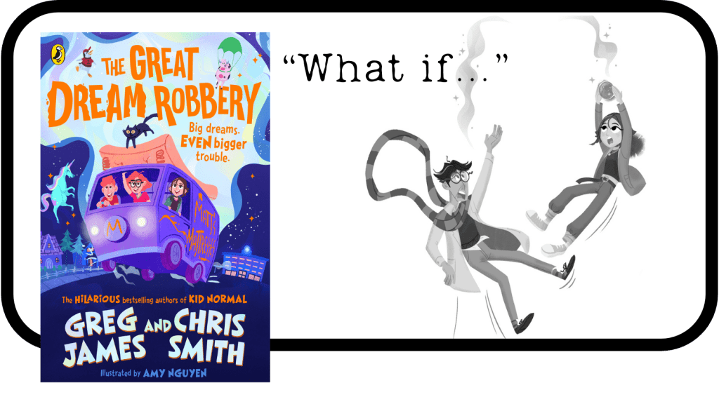 Greg had this idea when he was half asleep – so you could say it almost came to us in a dream! He imagined a gang of kids who could get together and have adventures in dreams, so unlike most kids they would be desperate to go to bed every night. We wrote this book during the lockdown of 2020. It was a really scary and unpleasant time so we wanted to write something fun to cheer ourselves – and hopefully some other people – up. We weren’t allowed to be inside together so a lot of it was written sitting on collapsible chairs (author chairs as we called them) on Hampstead Heath in London in the summertime.