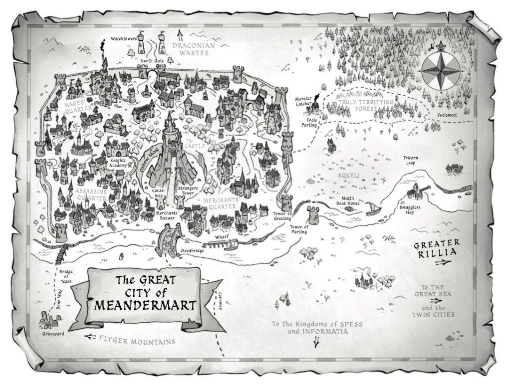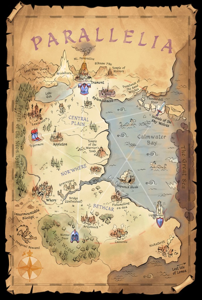 Like all the best tales, this one started with a map. I knew I really wanted to write a fantasy story. I wanted it to be funny, but also be properly grounded in a wonderful kingdom where a serious adventure could have taken place too. So I spent ages drawing a map of Parallelia and designing its guardian spirits. Then I gave the story a funny, sarcastic narrator in Frankie, hoping that some non-fantasy fans might come along for the adventure as well.